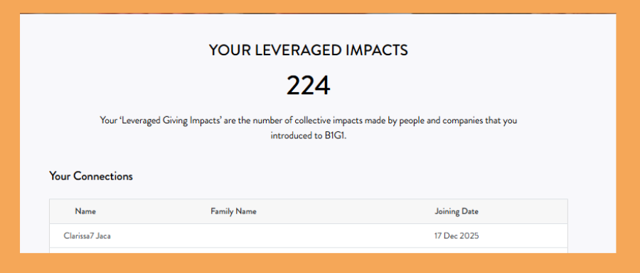 If you know a business that values purpose and wants to make a difference, you can refer them to B1G1: Business for Good — the global platform that helps companies embed giving into their everyday business activities.